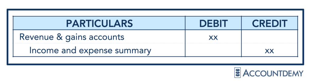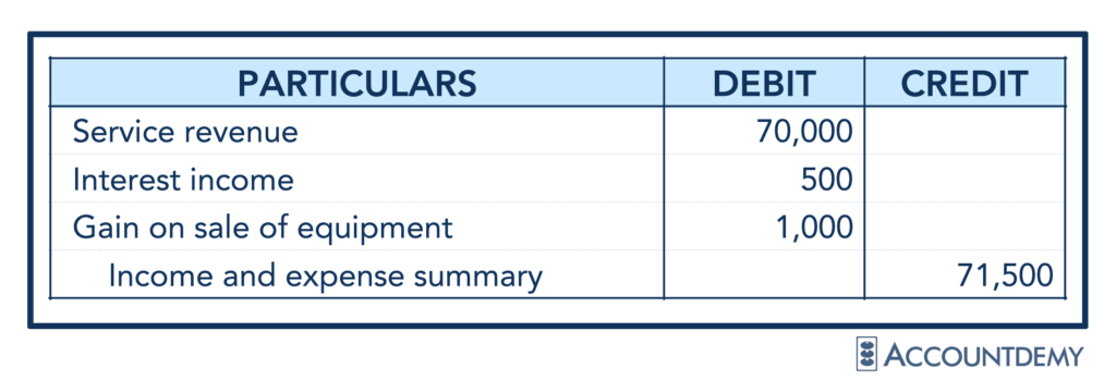 All temporary accounts with a credit balance, particularly the income accounts, are debited while the income and expense summary account is credited.