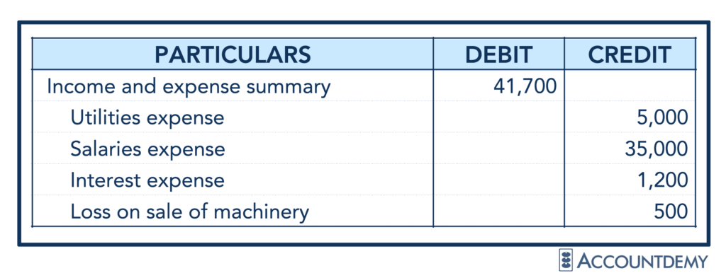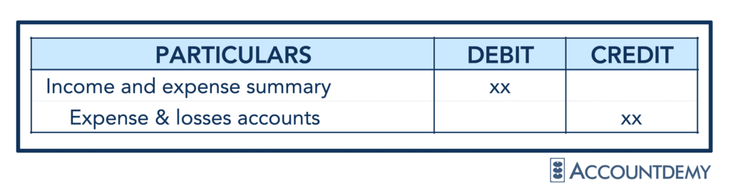 All temporary accounts with a debit balance, particularly the expense accounts, are credited while the income and expense summary account is debited.