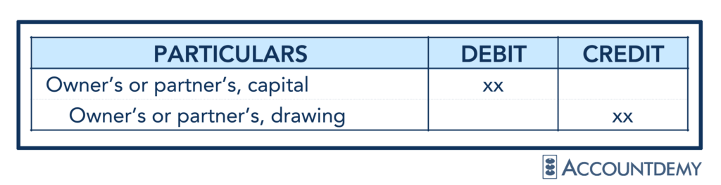 The balance of the drawing account should be closed to the capital account to reduce the latter’s balance. The closing entry for this would be: