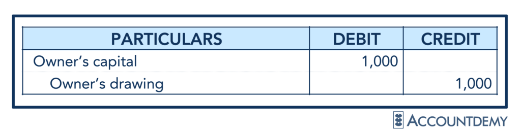 To illustrate, let’s assume that you withdrew $1,000 cash during the period for your personal use, the entry to close the drawing account will be: