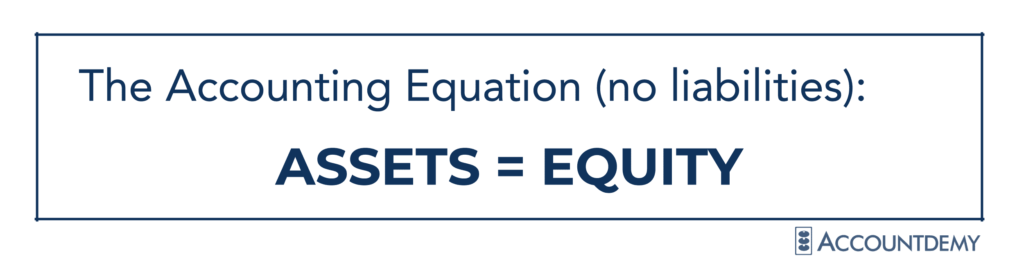 If the company has no liabilities, the formula will only consist of assets and equity as follows: