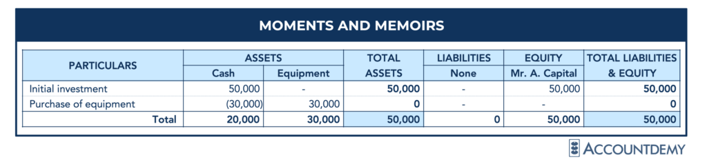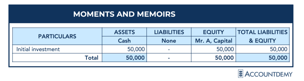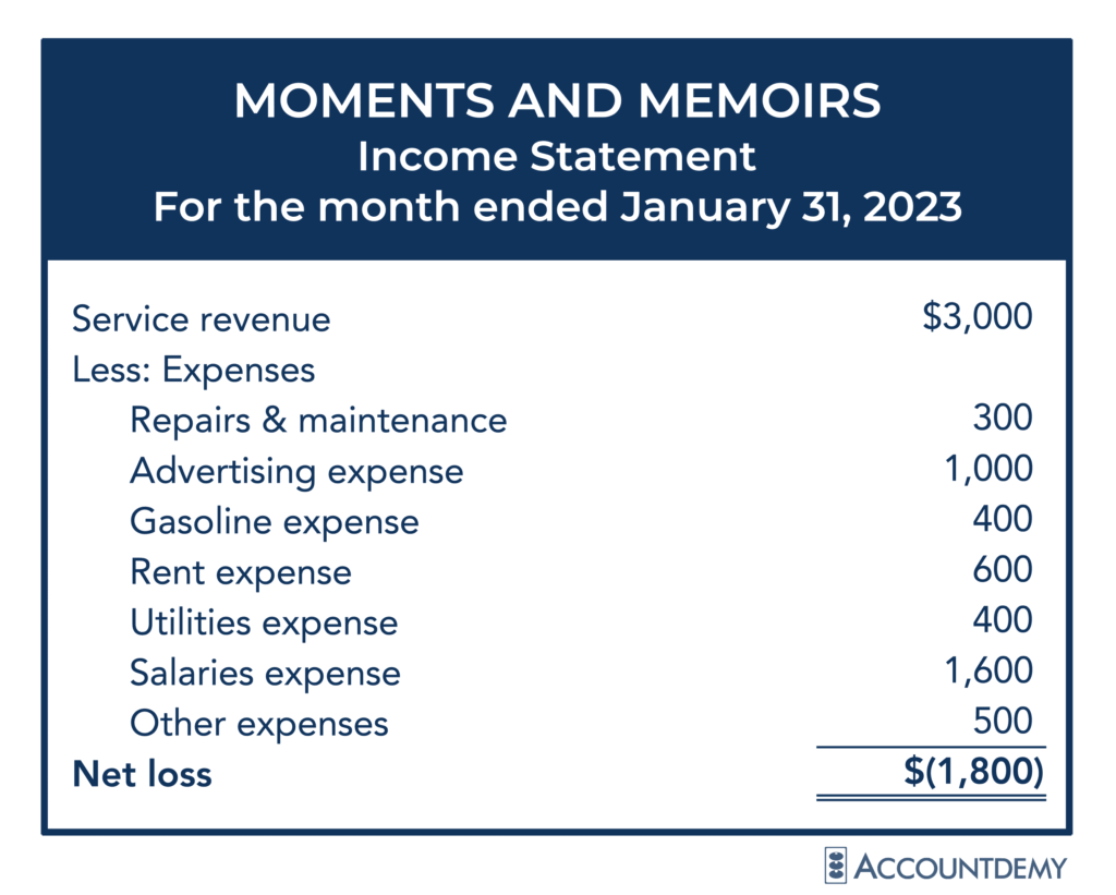 Let’s continue with the example above for Moments and Memoirs’ first month of operations.