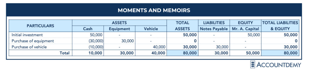Observe that in all of the transactions above, the equilibrium of the accounting equation was maintained even if the transaction affected only one side of the equation.