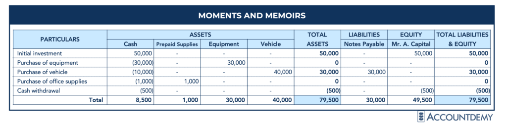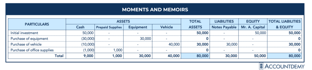 Notice that the equilibrium of the accounting equation was still maintained throughout the first month of operations.