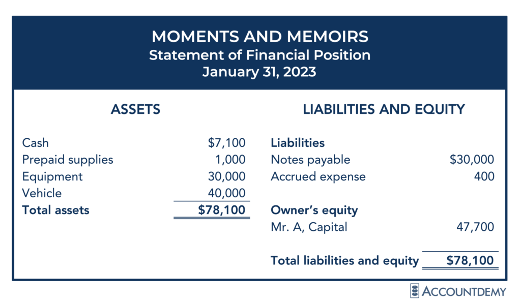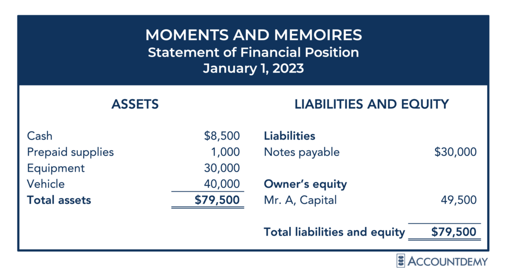 Below is the statement of financial position of Moments and Memoirs after accounting for the above transactions.